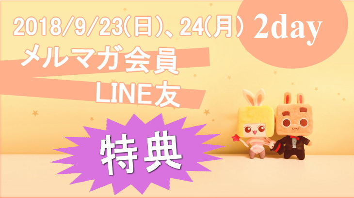 9/23(日),24(月)二日間LINE友追加orメルマガ登録の会員特典