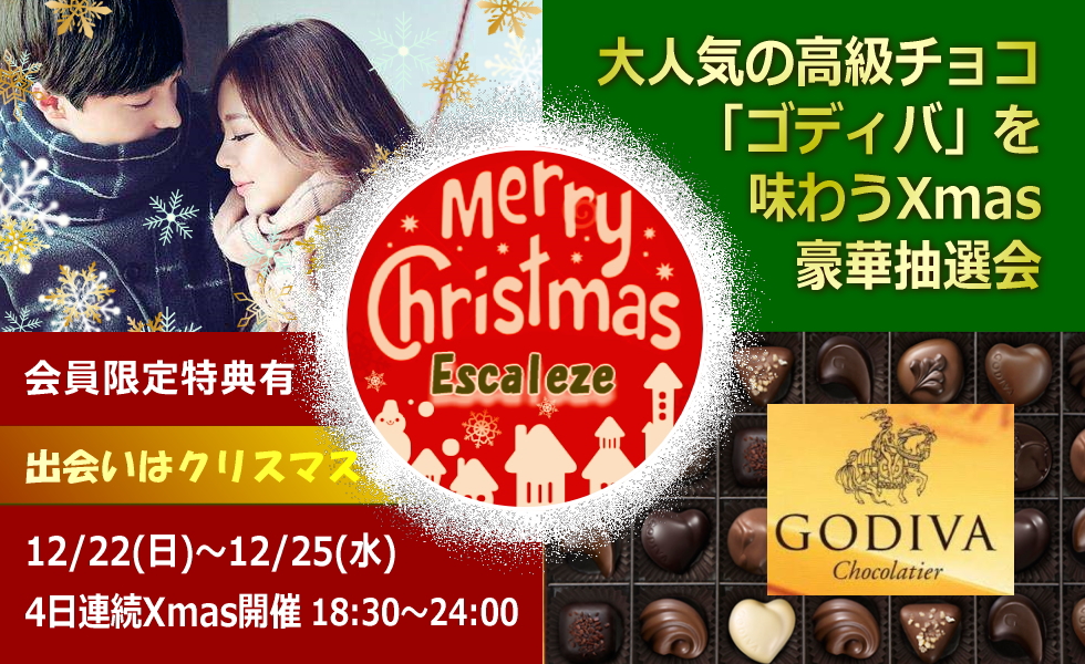 恋人のイベントクリスマス、一年の中で最も婚活が活発な時期!エスカルゼは豪華賞品とゴディバで全力応援いたします!