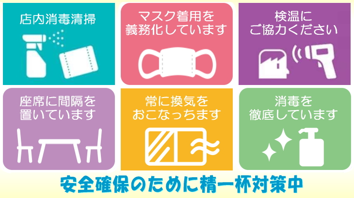 お客様に安心して当店をご利用いただけるよう、スタッフ一同対策を徹底してまいります。