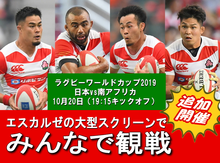 そしてエスカルゼ店内の110インチの大型スクリーンでのラグビー観戦、リアルな臨場感をぜひ一度ご体験いただきたいものです♪